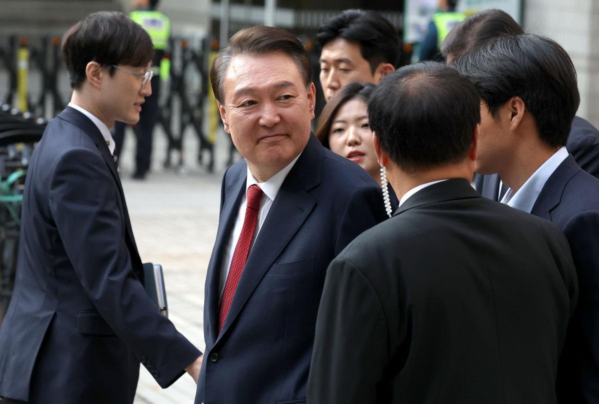 한눈에 보는 오늘 : 정치 - 뉴스 : 윤석열 전 대통령이 26일 오후 서울 서초구 중앙지방법원에서 열린 내란 우두머리 혐의, 직권남용 권리행사방해 혐의 사건 5차 공판을 마친 후 법원을 나서며 지